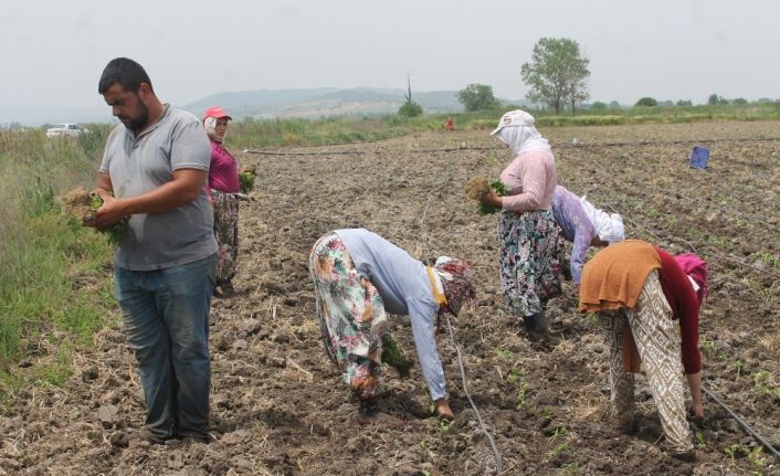 Manyas’ın kırsal Kulak Mahallesinde arazide kapya salçalık biber ekimi yapan işçilerin günlük 75 lira yevmiye aldıkları belirtildi. Tarım işçilerinden Birten Kılıç “ 37-38 derece sıcağın altında eve ekmek götürmek için tarlada çalışıyoruz. Her gün işe gidiyoruz, soğana gidiyoruz, çapaya gidiyoruz.”