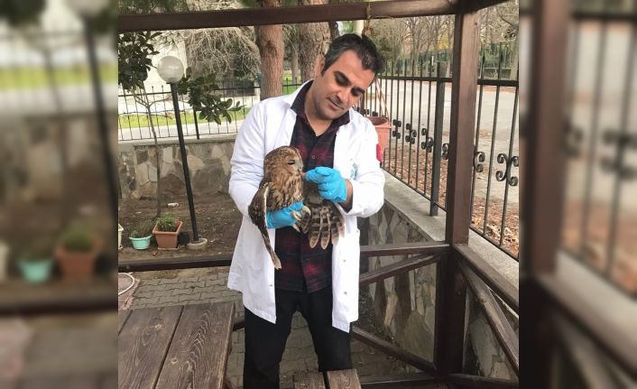 Vatandaşlar tarafından ilçesinde yaralı olarak bulunan alaca baykuş, Kaz Dağları Milli Parklar Şefliği’ne teslim edildi.