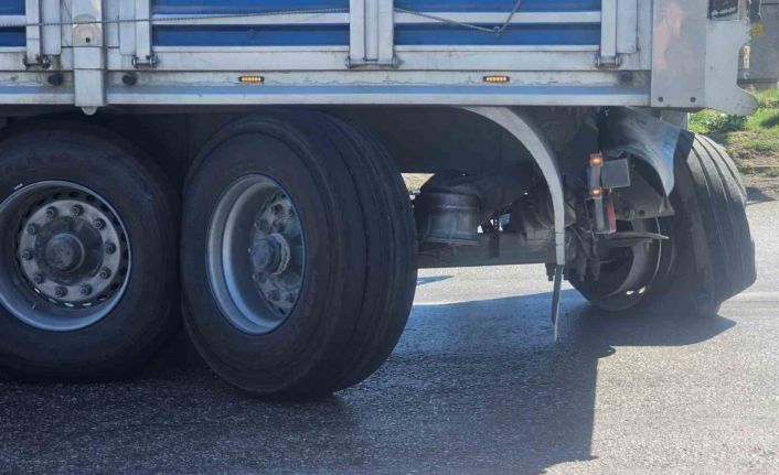 Meydana gelen olay, tehlikenin boyutunu bir kez daha gözler önüne serdi. 10 NP plakalı tır, dönüş esnasında kavşağın darlığı nedeniyle manevra yaparken dorsesinin dingili koptu. Bir anda gelen sesle kısa süreli panik yaşayan tır sürücüsü, kazadan şüphelenerek aracı kontrol etti. Yolun tam ortasında kalan tır, kısa bir süre trafiği tek şeride düşürdü.