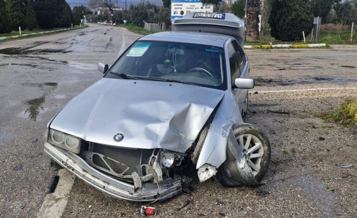 Balıkesir’in Erdek ilçesi Düzler Kavşağı’nda meydana gelen trafik kazasında bir otomobil trafik ışıklarının direğine çarparak kullanılamaz hale geldi.