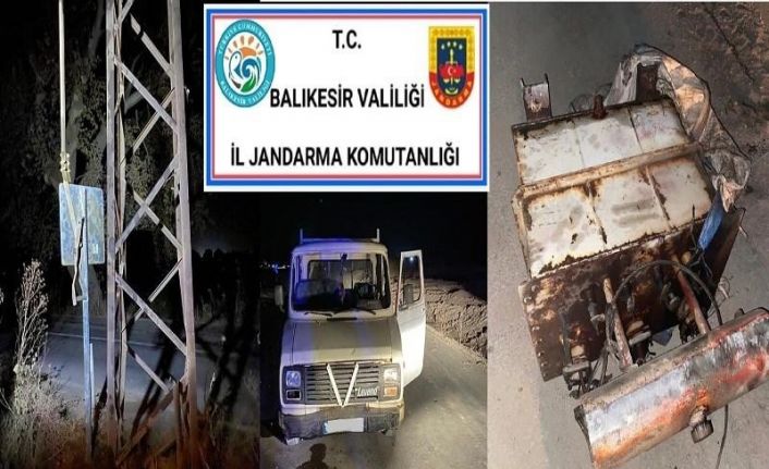 Balıkesir’in Altıeylül ilçesinde elektrik trafosunu sökerek ve sürükleyerek araca götüren hırsızlık şüphelileri jandarmanın kamera görüntülerini inceleyerek, şüphelileri ve araç tespit edilerek yakalandı.