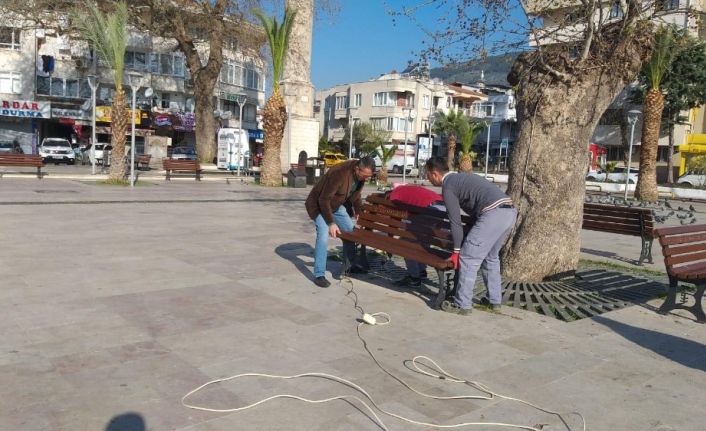 Coronavirüs’ün yayılmaması için Edremit Belediyesi 7 gün 24 saat mücadelesine devam ederken yetkililerin tüm çağrılarına rağmen ilçenin çeşitli meydanlarında bir araya gelen yaşlılar hem kendilerini hemde diğer vatandaşları riske atmaya başladı. Bunun üzerine Edremit Belediyesi Fen İşleri Müdürlüğü ekipleri ilçe merkezinde ve mahallelerde bulunan meydanlardaki oturma gruplarını geçici bir süre için sökmeye başladı. Son olarak Edremit’in Altınoluk Meydanında bulunan banklar ekipler tarafından söküldü. Yetkililer özellikle 60 yaş üstü vatandaşlarımızın mecbur olmadıktan sonra evlerinden çıkmamaları gerektiği konusunda bir kez daha uyarıda bulundular.