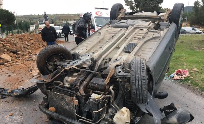 Yol kenarındaki kayaya çarpan otomobil takla attı: 1 yaralı