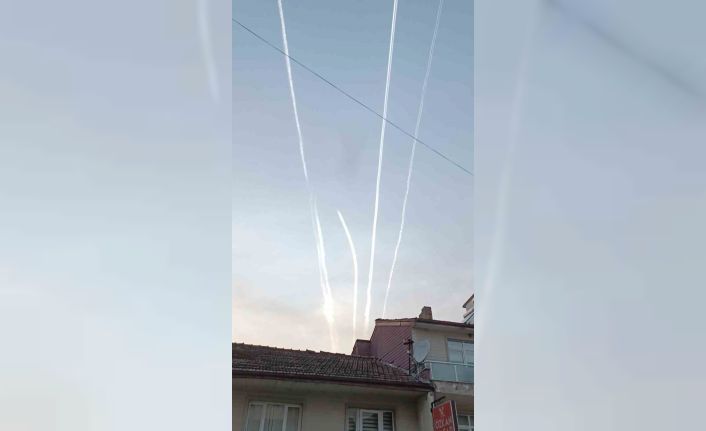 Bartın semelarında çekilin ilginç görüntüde yan yana uçan 4 uçaktan birinin eğri bir rotada seyir etmesi dikkat çekti. Uçağın rotası sosyal medyada da tartışma konusu oldu.
