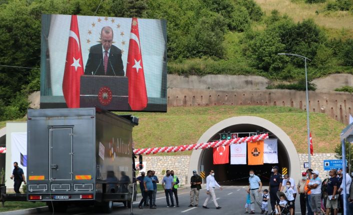 Bartın’daki yol açılışına Ankara’dan video konferans yöntemiyle bağlanan Cumhurbaşkanı Recep Tayyip Erdoğan, güzergahı kullanan vatandaşların sıkıntılarını çözmek amacıyla 90 kilometrelik yolu 75 kilometreye düşürerek yeniden projelendirdiklerini ifade etti.