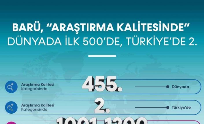 Times Higher Education (THE) 2025 Dünya Üniversite Sıralamasına göre BARÜ; ‘Araştırma Kalitesi’ alanında, 455. sırada, ‘Araştırma Ortamı’ kategorisinde 1206. sırada, ‘Uluslararası Görünüm’ kategorisinde 1392’nci sıraya yerleşti. Ayrıca BARÜ, ‘Sanayi’ kategorisinde 1996. sırada yer alırken ‘Öğretim’ alanında, 2054. oldu. BARÜ böylece değerlendirmeye alınan dört alanda da önceki yıla göre topladığı puan sayısını artırarak önemli bir başarıya imza attı.