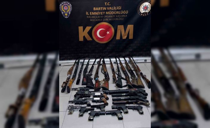 Bartın Cumhuriyet Başsavcılığınca yürütülmekte olan bir soruşturma kapsamında Bartın Emniyet Müdürlüğü Kaçakçılık ve Organize Suçlarla Mücadele Şubesi ekipleri, 6136 sayılı Ateşli Silahlar ve Bıçaklar ile Diğer Aletler Hakkındaki Kanun’un 13’üncü maddesine muhalefet nedeniyle bir iş yerine baskın düzenledi. Operasyonda, 17 Adet ruhsatsız av tüfeği, 8 Adet kurusıkı tabanca, 5 adet ruhsatsız tabanca ele geçirildi.