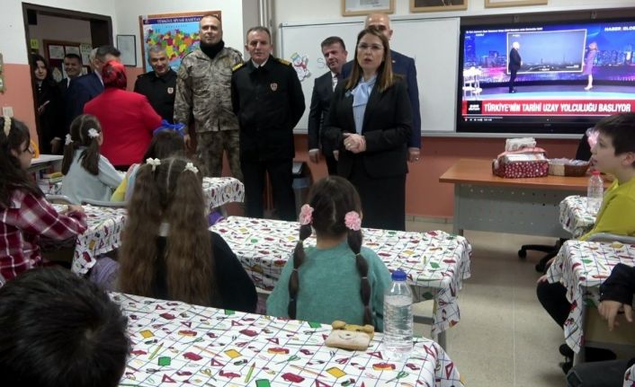 Bartın’da yarıyıl tatili nedeniyle düzenlenen törende 35 bin öğrenci karnelerini almanın sevincini yaşadı. Vali Nurtaç Arslan’ın heyecanla karnelerini bekleyen çocuklarla konuştuğu esnada hemen arkasında bulunan akıllı tahtada Türkiye’nin ilk astronotu Alper Gezeravcı’nın uzay yolculuğu hakkındaki haber karesinin yer alması dikkat çekti.