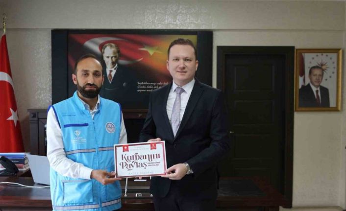 Türkiye Diyanet Vakfı adına Kaymakam Kılıç’ın kurban vekaletini kabul eden Müftü Yegin, Diyanet teşkilatı adına teşekkürlerini de ileterek makbuzunu takdim etti.