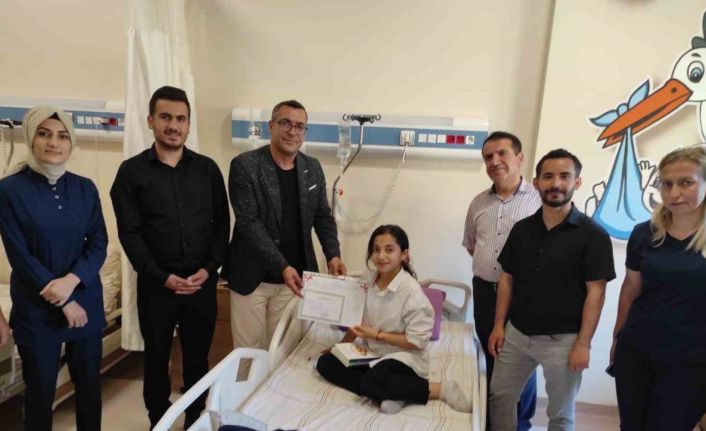 Hastanede karnesini alan öğrencilerden Şehriban Tiryaki, hastanede kendisini yalnız bırakmayan öğretmenlerine teşekkür etti.