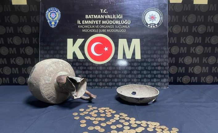 Batman’da polisin düzenlediği tarihi eser kaçakçılığı operasyonunda, 94 sikke, tarihi eser niteliğinde testi ve 1 adet tas ele geçirildi; 2 şüpheli hakkında işlem yapıldı.