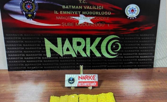 Batman Cumhuriyet Başsavcılığı koordinesinde, İl Emniyet Müdürlüğü Narkotik Suçlarla Mücadele Şube Müdürlüğünce uyuşturucu madde ticareti yaparak toplum sağlığına zarar verenlerin tespit edilip yakalanmasına yönelik çalışmalar sürüyor. Bu kapsamda 5 Mayıs 2023 günü Narkotik Suçlarla Mücadele Şube Müdürlüğü tarafından narkotik madde arama köpeğiyle yapılan uygulama neticesinde, bir yolcunun çantasında Cumhuriyet Savcısının talimatları ile adli arama yapıldı. Yapılan aramada, mikro fiber bezlere sarılı halde 1 kilo 74 gram metamfetamin ele geçirildi. Çantanın sahibi olduğu belirlenen şahıs, uyuşturucu veya uyarıcı madde imal ve ticareti suçu dahilinde sevk edildiği mahkemece tutuklanarak cezaevine teslim edildi.