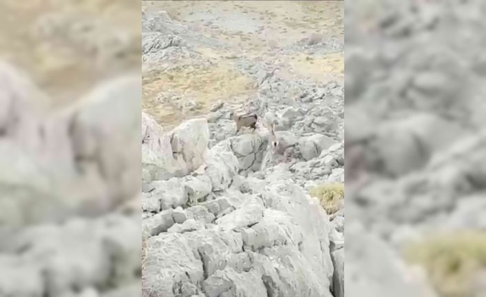 Batman’ın Kozluk ilçesi Yukarı Alıçlı köyünde dağların yüksek kesiminde kayalıklarda gezinen onlarca dağ keçisi görüntülendi.