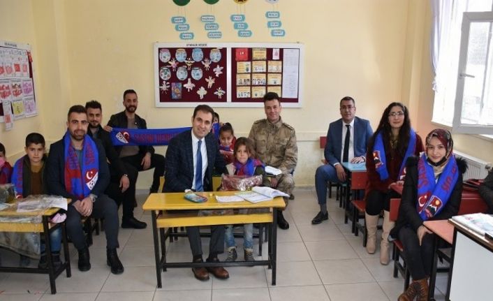 Batman’ın Sason ilçesinde köy okullarını ziyaret eden Kaymakam Murat Mete, öğrencilere kışlık mont ve ilçe spor kulübünün atkısını hediye etti.
