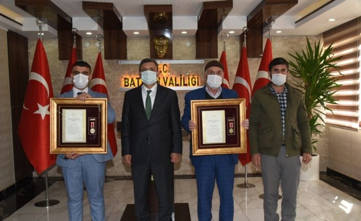 Batman’da şehit babası Mehmet Bağatur ve gazi Oktay Başak’a Devlet Övünç Madalyası ve Beratı verildi.