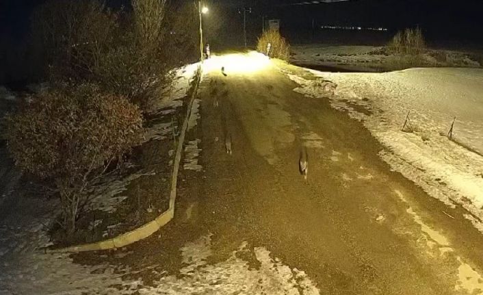 Bayburt’un Çayıryolu köyünü yaklaşık 1 aydır mesken tutan kurt sürüsü, güvenlik kamerasına yansıdı. Gece saatlerinde yiyecek arayan 11 kurt, güvenlik kamerasıyla saniye saniye görüntülendi.