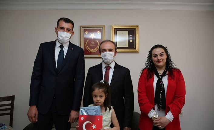 Vali Epcim, Gülsever ailesine Cumhurbaşkanı Erdoğan’ın selamını ileterek ziyareti anısına aile fotoğrafı çektirdi.