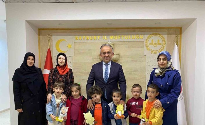 Türkiye Diyanet Vakfı Bayburt Şubesi adına bağışları kabul eden Müftü Danacı, minik öğrencilere ve kurs öğreticilerine teşekkür etti.