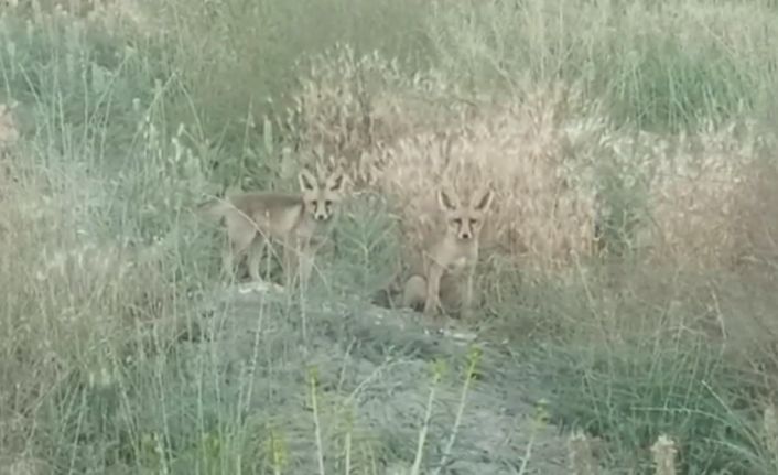 Bayburt’un Demirözü ilçesi kırsalında, yuvalarının başında annelerinin yiyecek getirmesini bekleyen iki yavru tilki görüntülendi.