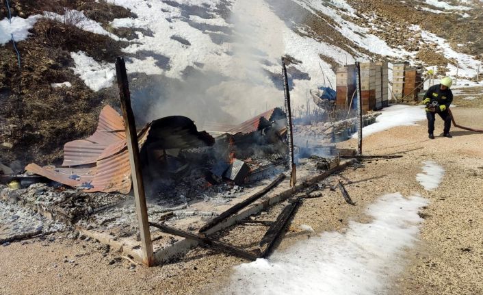 Bayburt’ta arıcı barakası yanarak kül oldu.