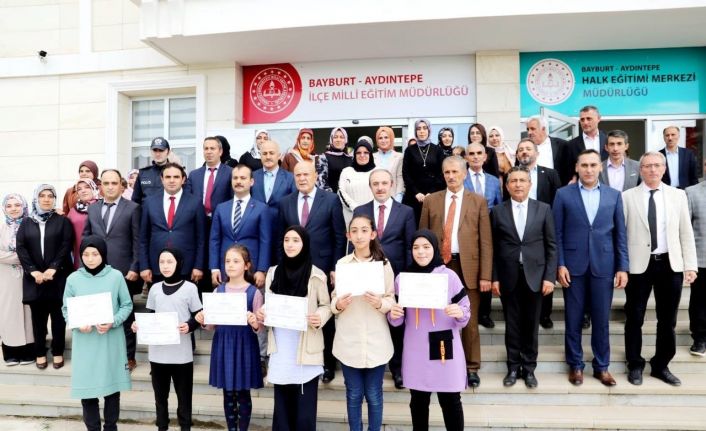 Aydıntepe Halk Eğitimi Merkezi sergisinde yer alan yöresel halılar, çini ve seramikler, filografi modelleri, ahşap süsleme ürünleri, takı tasarımları, giysiler, işlemeler, örgüler ve el nakışları katılımcılar tarafından ilgiyle incelendi. Serginin son bölümünde temel robotik ve kodlama kursunu dönem içinde başarıyla tamamlayan öğrencilere kurs bitirme belgesi verildi.