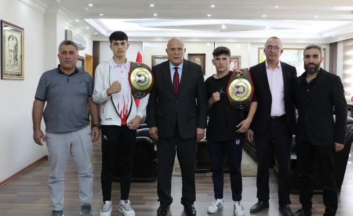 Manisa’da düzenlenen Boks Ligi Kemer Müsabakasında kemer sahibi olmaya hak kazanan Bayburt Belediyesi Tuğra Boks Spor Kulübü sporcuları Bedirhan Akburak ve Zekeriya Akarsu, Belediye Başkanı Hükmü Pekmezci’yi makamında ziyaret ettiler.