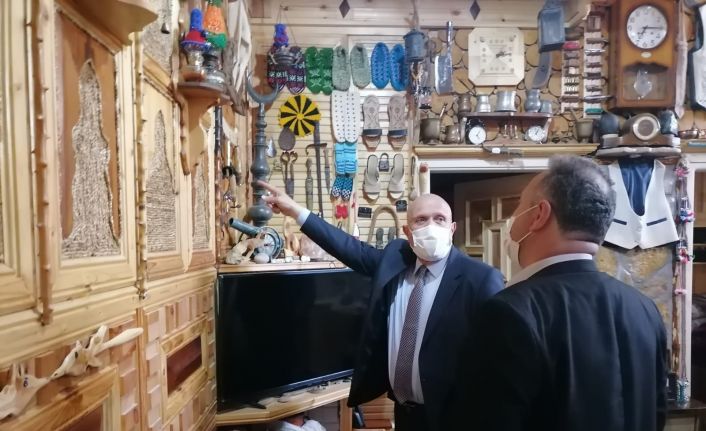 Bayburt Belediye Başkanı Hükmü Pekmezci, evini geleneksel mimari yapıya uygun restore ederek topladığı eski günlük yaşamda kullanılan araç ve gereçleri sergileyen Ömer Keleş’i ziyaret etti.