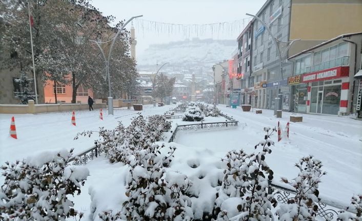 Bayburt’ta sabaha karşı etkisinin arttıran kar yağışı kenti beyaza bürüdü, vatandaşlar güne karla uyandı.