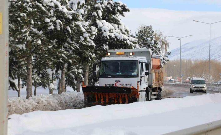 Yoğun kar yağışının yaşandığı Bayburt’ta Bayburt Belediyesi karla mücadele ekipleri şehir merkezinde çalışmalarını sürdürüyor. Vatandaşların yoğunluk gösterdiği yollar başta olmak üzere şehrin birçok farklı noktasındaki ekiplerce, yollar karlardan temizleniyor.