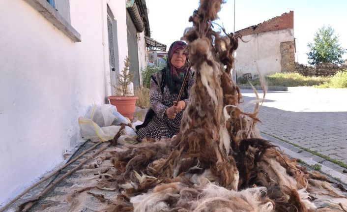 Bayburtlu kadınların günlerce süren yün çırpma mesaisi, havaların da ısınmasıyla birlikte başladı.