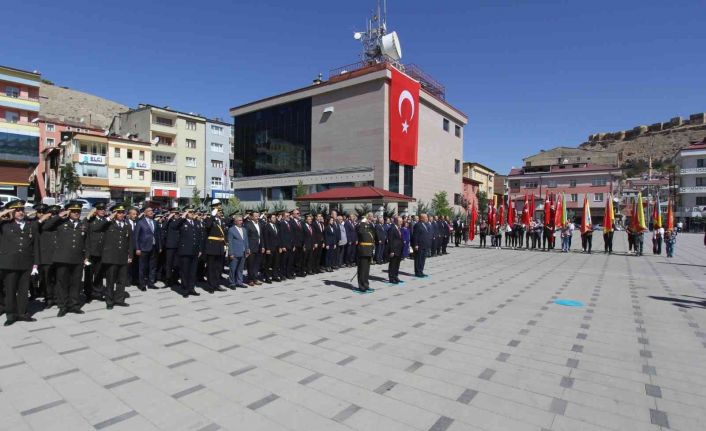 Saray Bahçesinde gerçekleştirilen kutlamalar, Atatürk büstüne çelenklerin sunulmasıyla başladı. Burada Vali Cüneyt Epcim, Garnizon Komutanı Topçu Albay Zekeriya Tosun ile Belediye Başkanı Hükmü Pekmezci tarafından çelenk sunuldu.