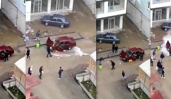 Olay, Olutmuş Caddesi üzerinde meydana geldi. Alınan bilgiye göre, park halindeki otomobilini çalıştırmak üzere araca binen ve kontağı çeviren sürücü, bir anda yangın çıktığını fark etti. Kısa devre nedeniyle çıktığı tahmin edilen araç yangını söndürebilmek için çevredeki vatandaşlar seferber oldu. Kimi kovayla, kimi de hortumla yanan aracın ön kısmına su tuttu. Aracın akaryakıt kısmının yanması üzerine çabalar sonuç vermedi. Bu sırada bazı vatandaşlar da yangın söndürme tüpüyle müdahalede bulundu. Birkaç kez denemenin ardından yangın söndürme tüpüyle yapılan müdahaleyle yangın itfaiye ekipleri gelmeden söndürüldü.