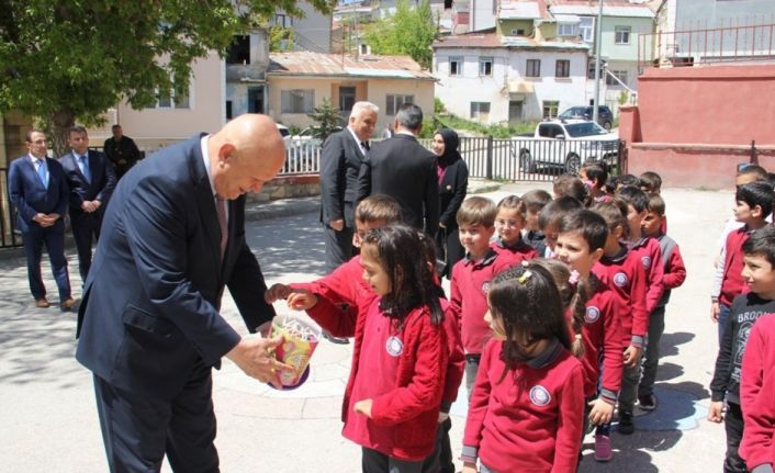 Tören öncesinde ise Başkan Pekmezci öğrencilere şeker ikram ederek minik çocuklarla keyifli sohbet gerçekleştirdi.