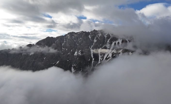 Bayburt’ta dağlar sis bulutlarıyla kaplandı!