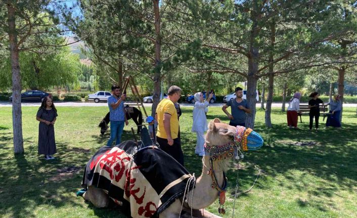 Şehir Parkı’nda develere ve midillilere binerek kısa gezintiler yapan minikler ve büyükler bol bol fotoğraf çektirdiler. Develer ve midilliler şölenler boyunca şehir parkında ücretsiz olarak vatandaşların hizmetinde olacak.
