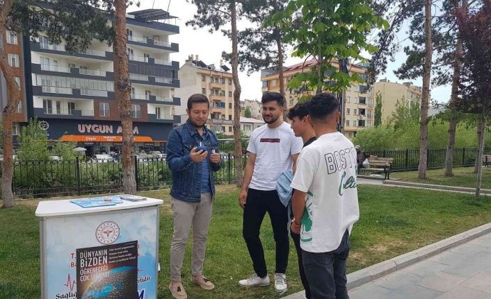 Cumhuriyet Caddesi üzerinde kurulan stantta sağlık ekipleri, “Dünya Tütünsüz Günü” etkinliğine dair bilgilendirmede bulundu.