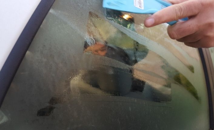 Bayburt’ta gece hava sıcaklığı sıfırın altına düştü. Araç camları buz tuttu.