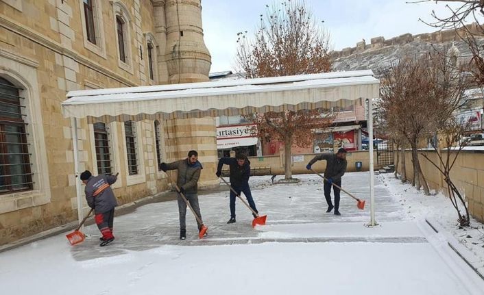 Bayburt Belediyesi ekipleri kentte karla mücadele çalışmalarını sürdürüyor.