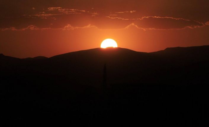 Bayburt’ta güneşin batışı kartpostallık görüntüler oluştururken gün batımında oluşan eşsiz manzara fotoğraf tutkunlarını kendine hayran bıraktı.