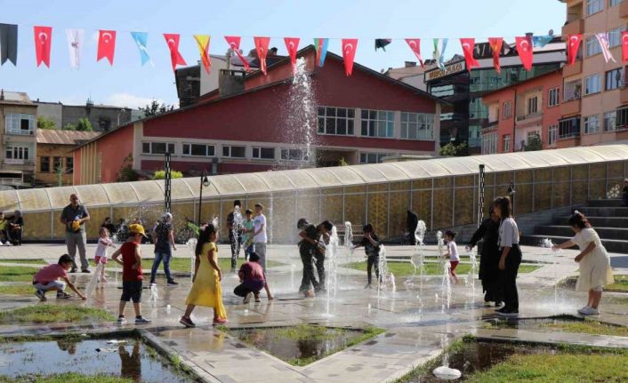 Meteorolojinin yüksek sıcaklık uyarısında bulunduğu Bayburt’ta çocuklar fıskiyelerle serinleyerek neşeli dakikalar geçirdiler.