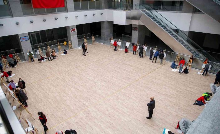 Sanat ve Tasarım Fakültesi Resim Bölümü öğrencilerinin rehberliğinde hazırlanan resimler etkinliğin sonunda sergilendi.