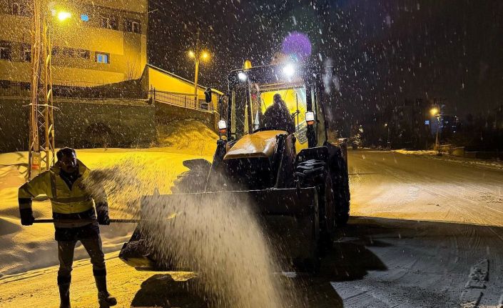 Kara yolları ekipleri şehirlerarası yollarda trafiğin aksamaması için çalışmalarını sürdürürken, belediye ekipleri de kent merkezinde kar küreme çalışması yapıyor.