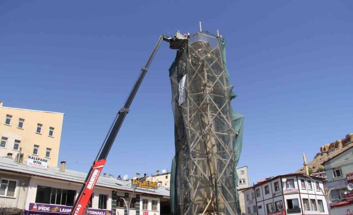 Bayburt’un simgelerinden Tarihi Saat Kulesinin restorasyonu devam ediyor