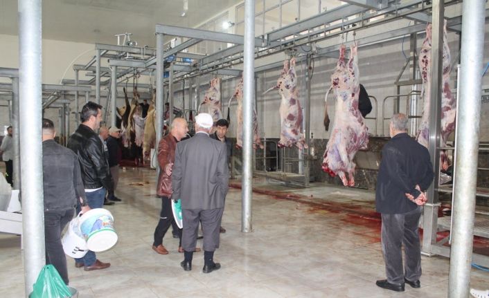 Bayburt Belediyesi’ne ait tarım yerleşkesindeki mezbahanede kurbanlıklar usta kasaplarca kesilerek, hayvan sahiplerine parçalanıp teslim edildi.