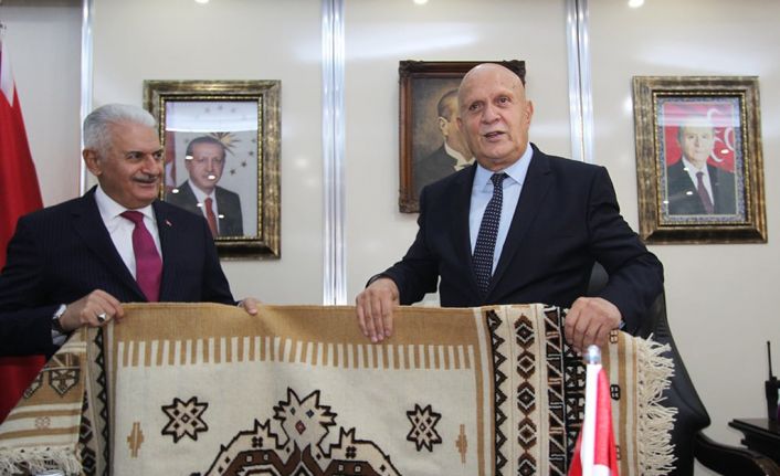 Bir dizi ziyaret ve açılış töreni için Bayburt’a gelen AK Parti Genelbaşkan Vekili Binali Yıldırım kalabalık bir heyetle birlikte Belediye Başkanı Hükmü Pekmezci’yi makamında ziyaret etti.