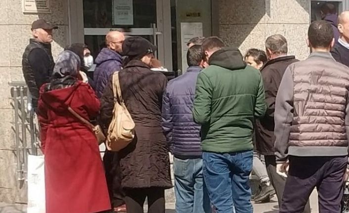İçişleri Bakanlığının korona virüs tedbirleri kapsamında yayınladığı genelgenin ardından saat 12.00’de açılan bankaların şubeleri önünde vatandaşlar yoğunluk oluşturdu.