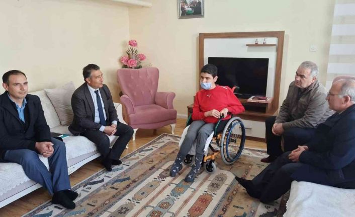 İl Milli Eğitim Müdürü Rahmi Güney, Şube Müdürü Dursun Yeşil’le birlikte evde eğitim hizmeti alan Bayburt Lisesi 9. sınıf öğrencisini evinde ziyaret ederek karnesini takdim etti. Evde eğitim hizmetiyle ilgili açıklamalarda bulunan Güney: “Rehberlik Araştırma Merkezimiz tarafından yapılan değerlendirme sonucuna göre evde eğitim alması gereken öğrencileri tespit ettik. Okula erişimi zor olan özel eğitim öğrencilerimiz için görevlendirdiğimiz öğretmenlerimiz, evlerde hizmet vermeye başladı. İlimizde sağlık problemi nedeniyle örgün eğitim kurumlarından doğrudan yararlanamayan 4 öğrencimiz bulunmaktadır. Bu yavrularımızdan birinin karnesini almadığını duyunca hemen ona ulaştırmaya karar verdik. Bugün, ekibimle birlikte öğrencimizin karnesini takdim ederek onun ve ailesinin karne sevincine ortak olduk.” dedi.