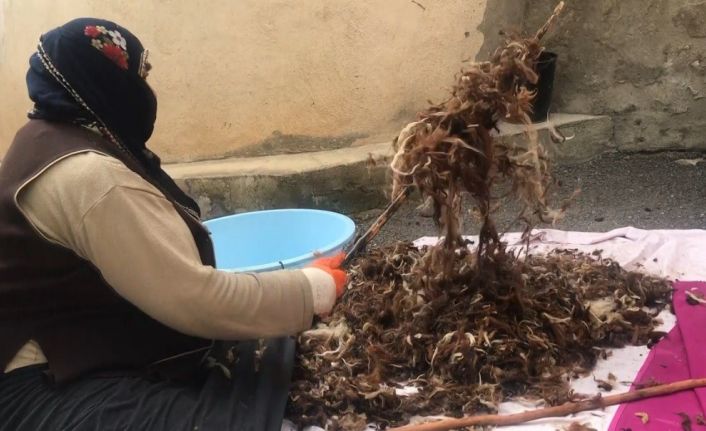 Bayburt’ta kadınlar, koyun sürüsü sahiplerinden satın aldıkları yünleri saatlerce çırparak, evlerinde kullanılır hale getiriyor.