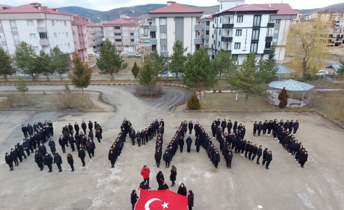 Kız öğrencilerin hazırlanarak ortaya çıkardığı duygusal anlar ise ayrıca havadan görüntülendi. Şehit Osman Tepesi’nde bulunan şehitliği ziyaret eden öğrenciler ardından okul bahçesinde ’18 Mart’ yazılı koreografisiyle, şehitleri anarak hep bir ağızdan Kahramanmaraş merkezli depremlerden etkilenen illeri sayıp, ’burada’ dediler.