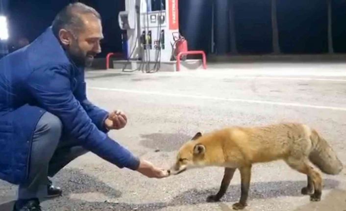 Çalhanoğlu, "Konursu köyünde bulunan akaryakıt istasyonunda tilkimizle karşılaştık. Acıktıkça buraya geliyor ve elimizle besliyoruz. O bizim neşemiz, çok güzel bir hayvan" dedi.